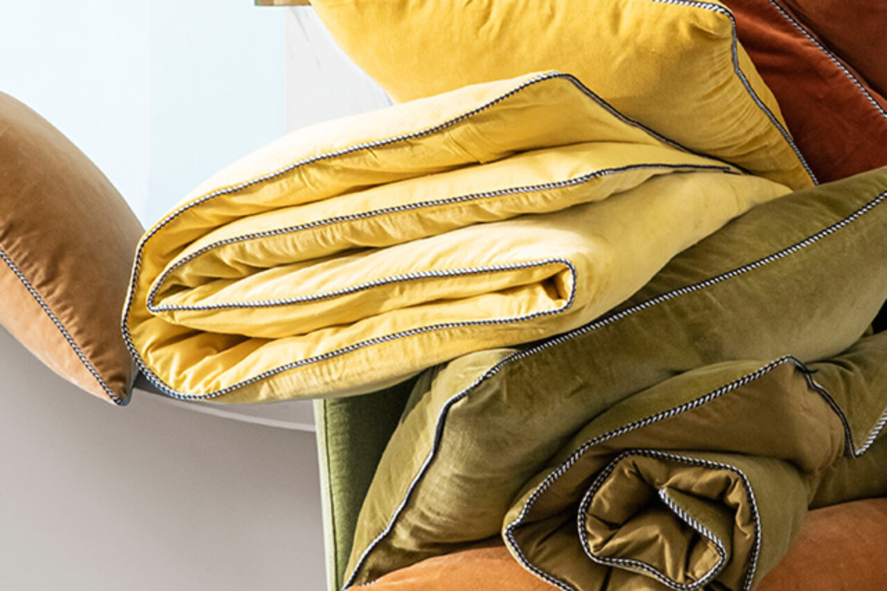 Les housses de coussin en velours unie 100% coton sont de nouveau à l’honneur avec la nouvelle collection DELHI de chez Haomy (anciennement Harmony). Le textile utilisé est un un coton issu d’une agriculture raisonnée et éco-responsable labellisé OEKO-TEX®, garanti sans aucune substance toxique. Les coussins se coordonnent avec les poufs, les édredons et les rideaux de la même collection.